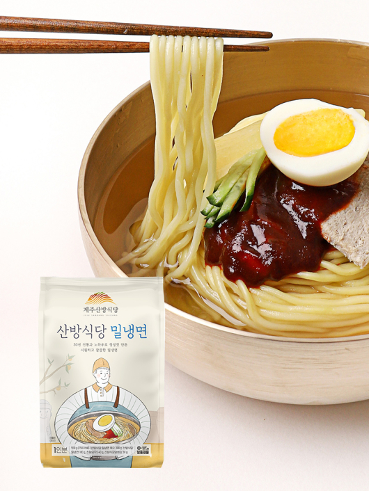SINCE 1971, 서귀포 로컬 맛집 산방식당의 깊이 있고 묵직한 감칠맛의 제주도식 밀냉면입니다.
